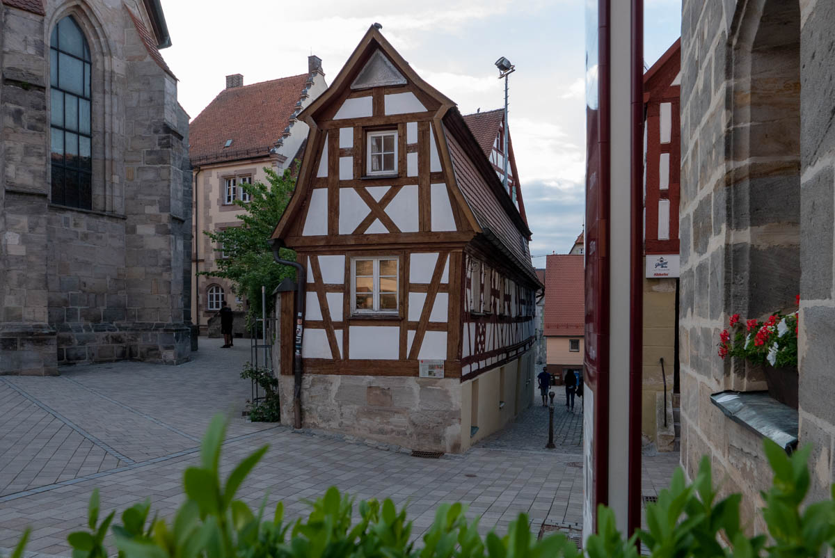 Nun ist Altdorf nicht etwa, wie es der Name vermuten lässt, nur eine Kirche und ein paar Häuser. Sondern Altdorf kommt als Kleinstadt mit restauriertem Markt daher und einem überhaupt recht herausgeputzten Ortskern, in dem sich ganz besonders viele Sandstein- und Fachwerkgiebel in den Himmel räkeln.