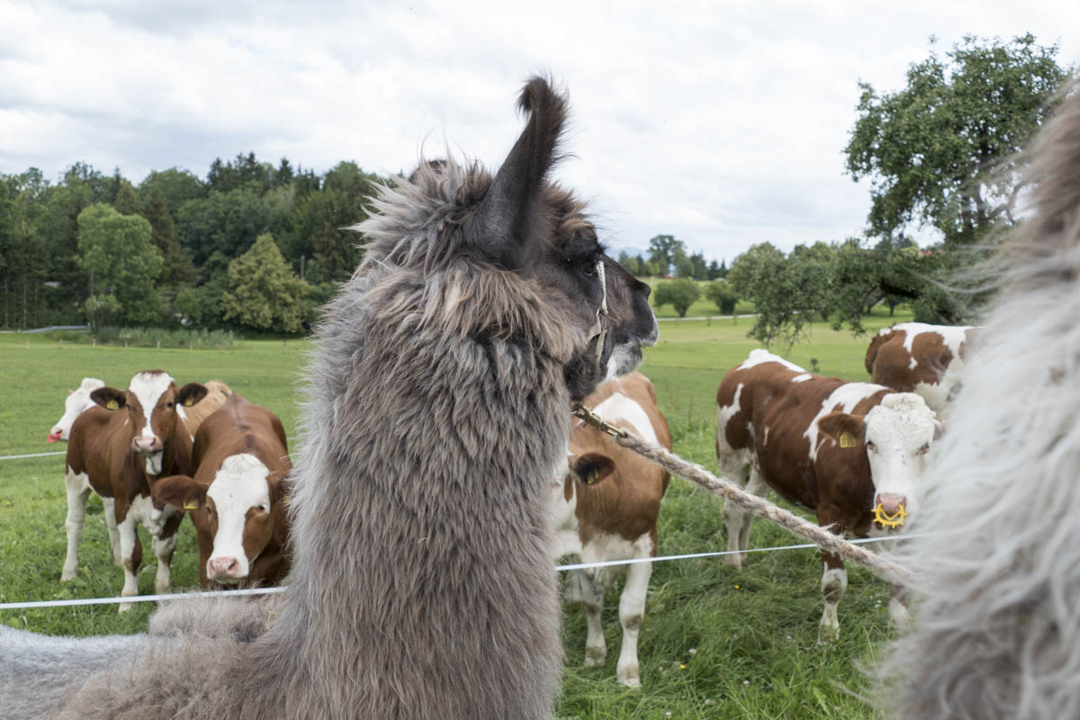Namentlich Camille, Checko und Coco sowie Merlin und Pepino. – Fünf Lamas, die gemeinsam mit vier Alpakas auf dem Glaswinklerhof bei Bad Tölz ihr Zuhause haben. Ein jeder von ihnen ist ein Charakterkopf: Der eine auf Anhieb lustig und frech, der andere zunächst skeptisch und distanziert. Allesamt unaufdringlich und ruhig in ihrer Art.
