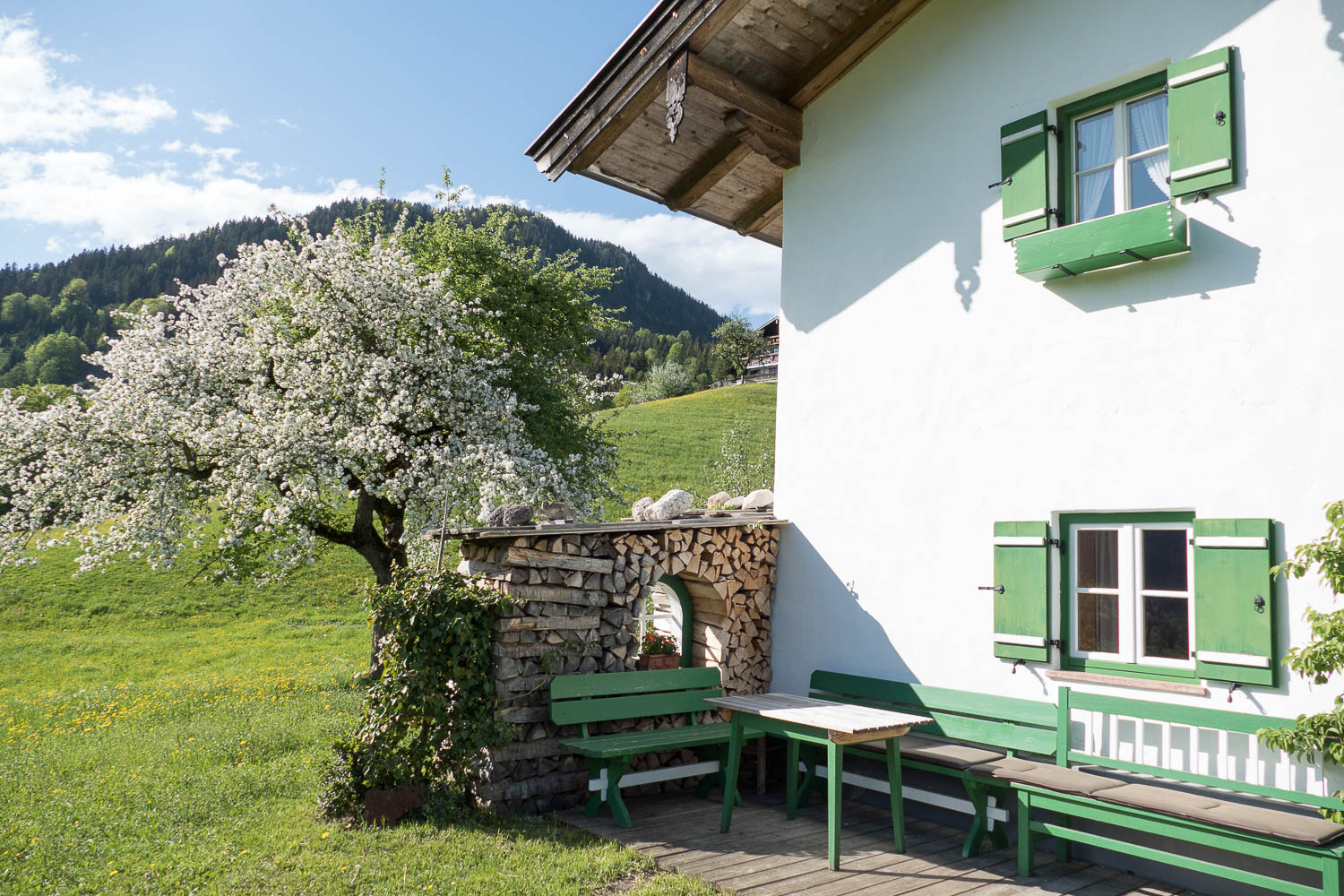 Wer möchte, lässt sich abends ein Brotzeitbrettl oder auch morgens ein Frühstück richten – ganz gemütlich vor dem Stadl. Sommerglück pur!