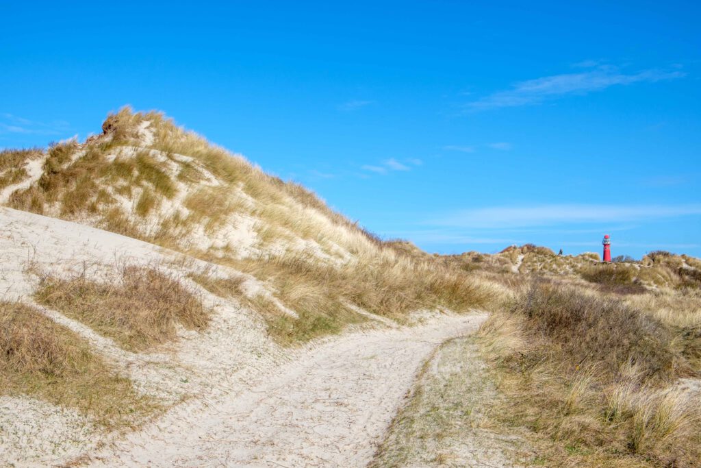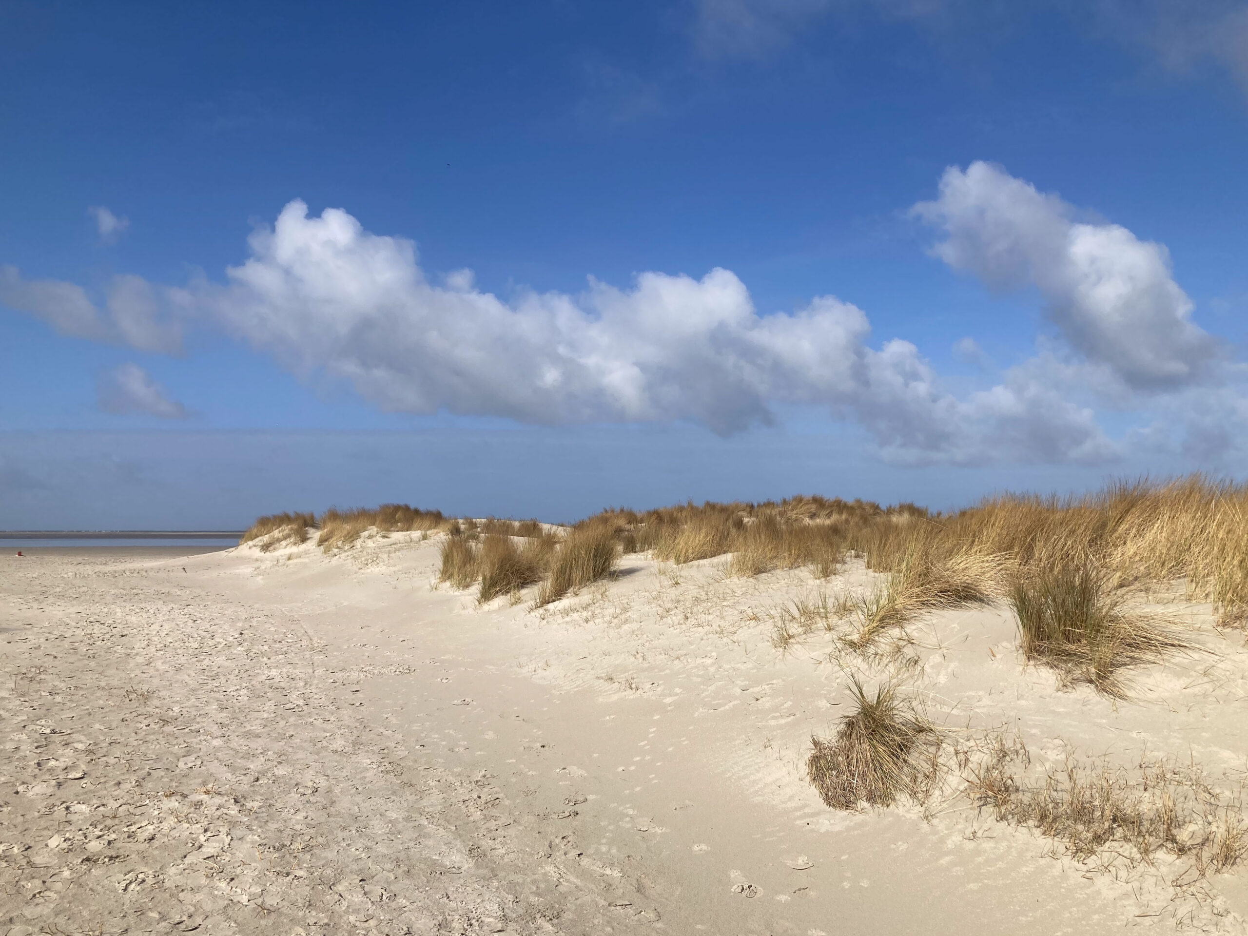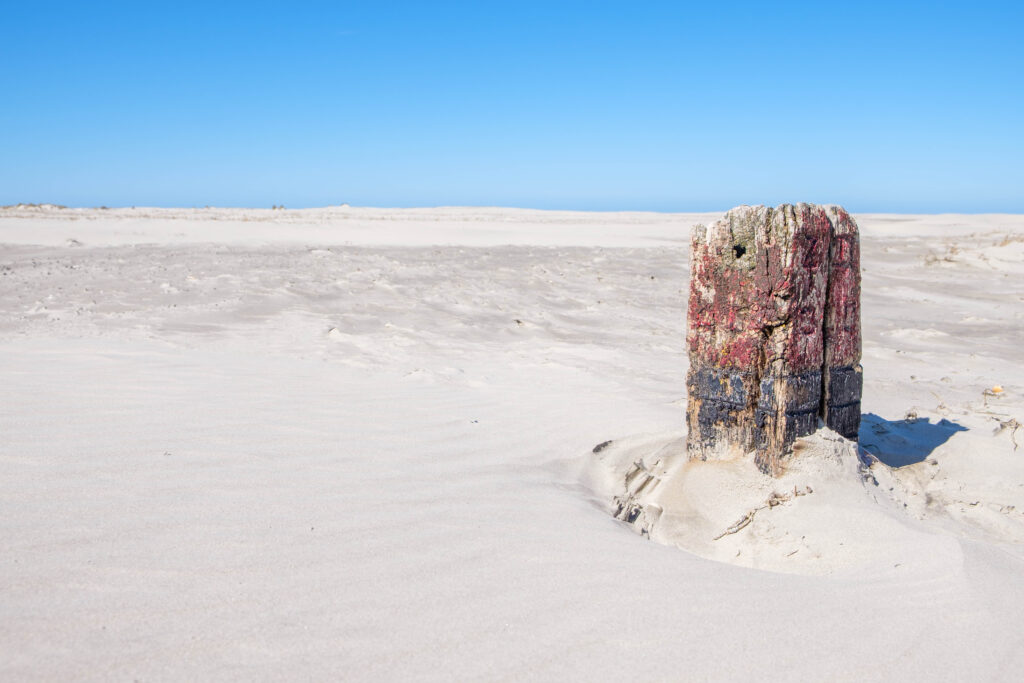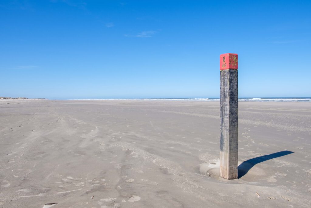 Der breite Strand zieht sich auf schier endlosen Kilometern nordseitig um die Insel. Im Abstand von jeweils einem Kilometer finden sich Strandpfähle aus Holz. Bevor man auf GPS zurückgreifen konnte, halfen diese Pfähle Veränderungen an der Küstenlinie zu erfassen. Heute dienen sie vor allem beim Wandern zur Orientierung vor Ort.
