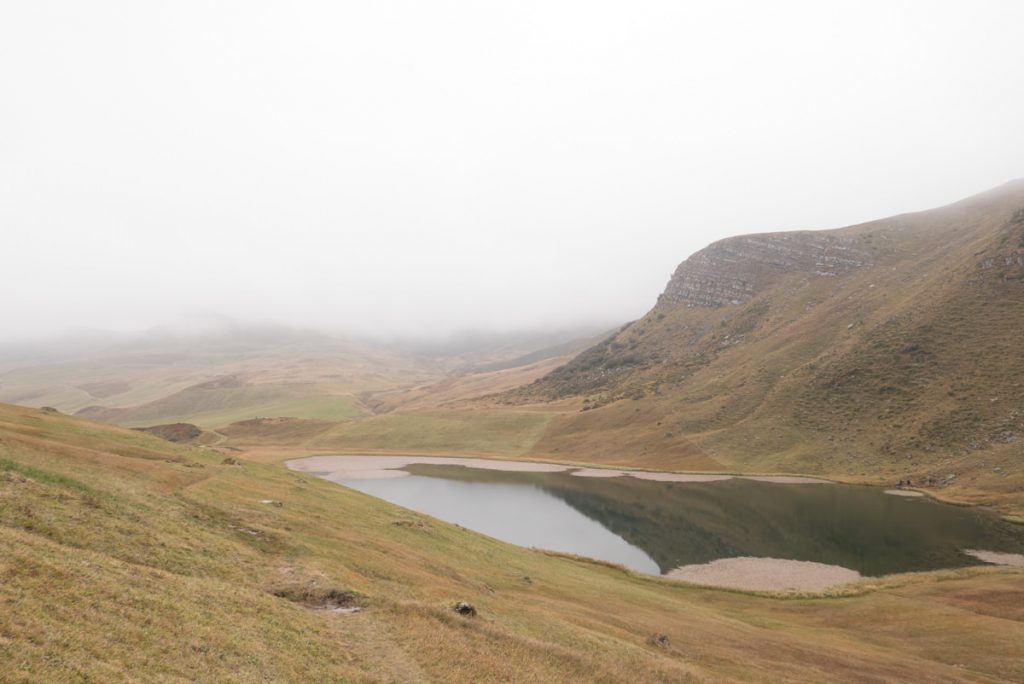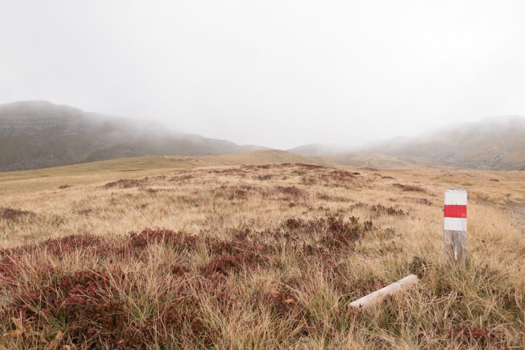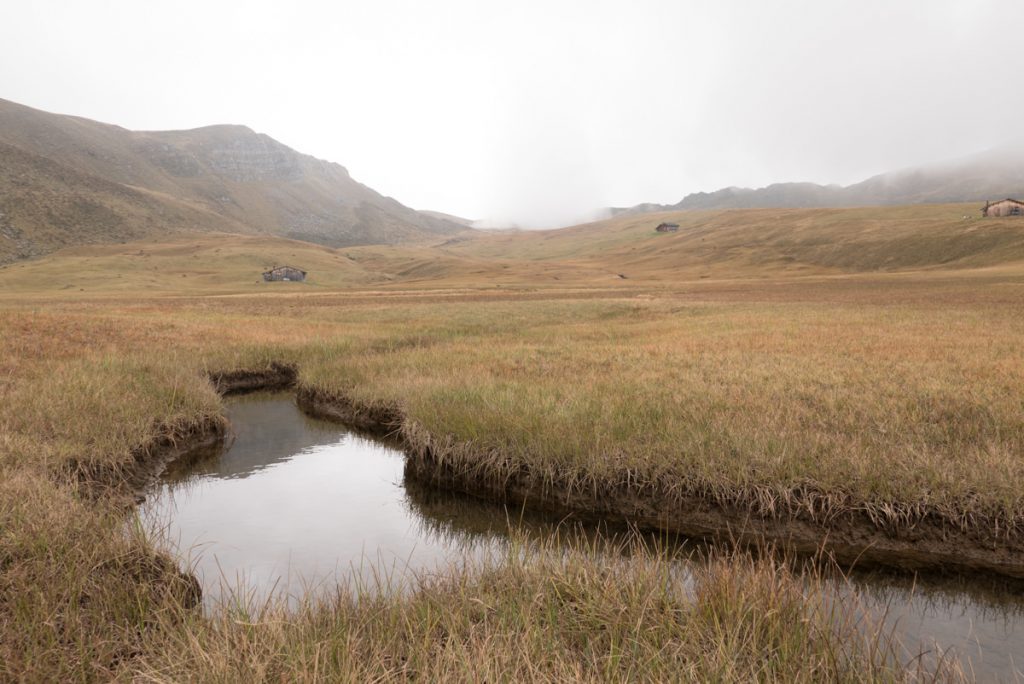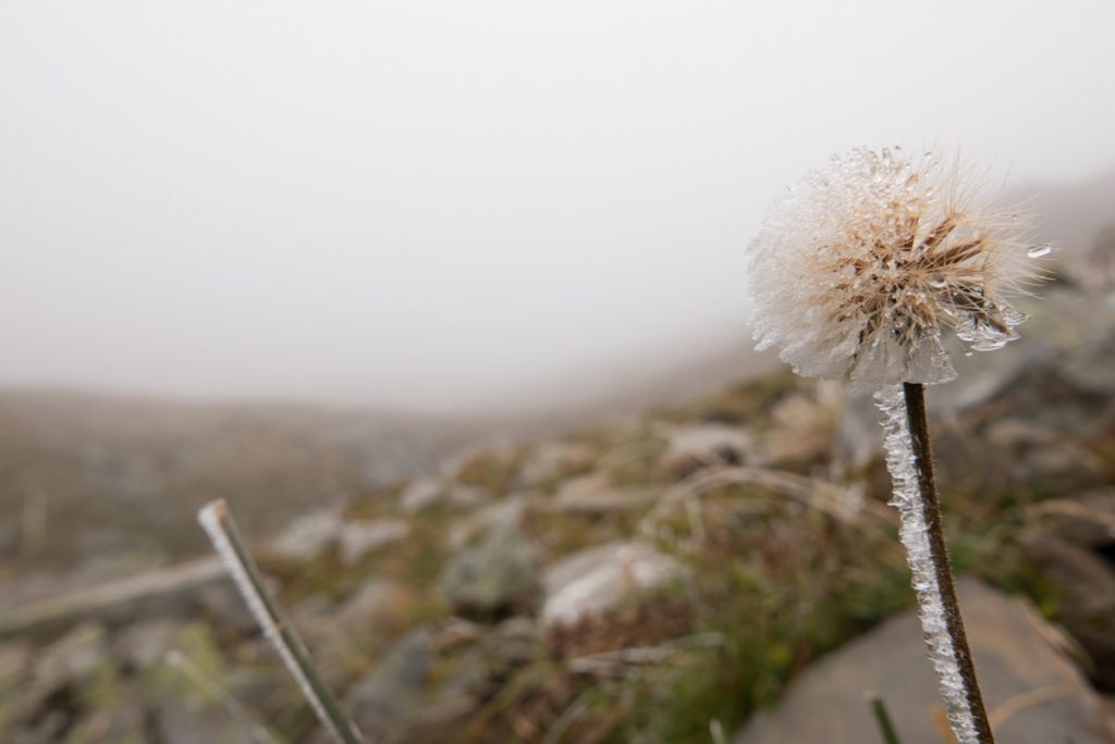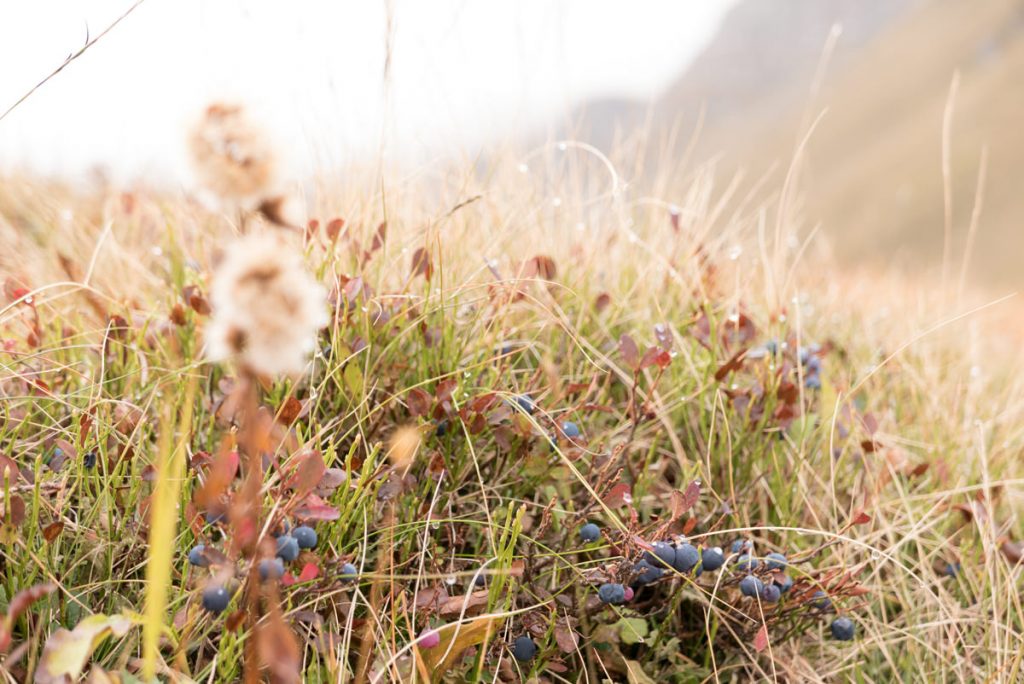 Dass aus der geplanten Rundwanderung vom Berghaus Heuberge über das Mattjischhorn nichts werden würde, war relativ schnell klar, kaum dass wir losgelaufen waren. Denn der Himmel zog extrem schnell zu. Wir änderten unseren Plan, ließen uns einfach treiben – vorbei an den Clunerseen durch das Moor. Hinauf zur Arflinafurgga, wo der Nebel hier und da ausflockte und sich die Feuchtigkeit der Luft als Eispanzer um die Grashalme legte. Noch ein paar Meter weiter, bis endgültig klar war: Hier gibt’s heut nichts mehr zu sehen.